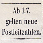 "Ab 1.7./ gelten neue/ Postleitzahlen"; Einkreisstempel mit Stegsegment oben (bo3z) "SCHWÄBISCH GMÜND 1/ mc/ (Datum)/ 7070"