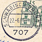 Zweikreisstegstempel (bozbu) "SCHWÄBISCH GMÜND 2/ i/ (Datum)/ 707"