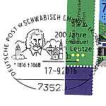 Ellipsenstempel mit 3 Striche (2bo5zbu) "DEUTSCHE POST ERLEB- NIS BRIEFMARKEN SCHWÄBISCH