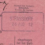 Einkreisstempel (bo3zbu) "STRASSDORF/ (Datum)/ O. A. GMÜND"
