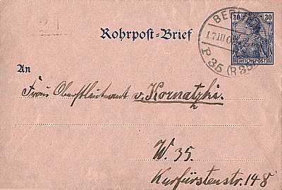Local postcard with pneumatic from 17.03.1902 franked with one stamp impression a 30 Pfennig (=30 Pfennig)