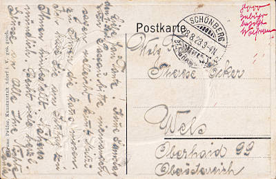 Foreign postcard from 28.08.1923 (16. Period) franked with 8 000 Mark; to Austria the inland fee was valid |