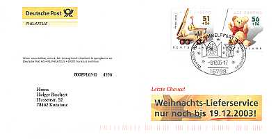 Brief mit abgeschliffener roter Briefmarke