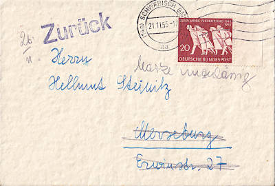 Brief in die DDR mit handschriftlichem Vermerk "Marke unzulässig" und "Zurück"-Stempel der DDR-Post