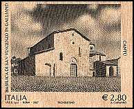 02.07.2007 Artistic and cultural heritage: Basilicaof Saint Vincent in Galliano printed on wood