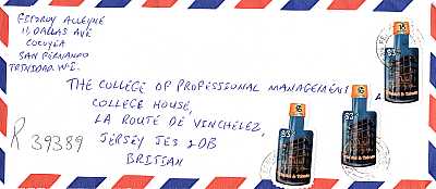 Auslandsbrief mit Einschreiben und Luftpost frankiert mit 3 Marken 175 Jahre Angostura Bitters
