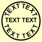 Textkreisstempel: Stempel ohne Einfassung mit zwei gebogenen Textzeilen in runder Form