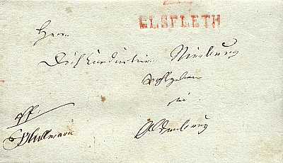 roter Einzeiler "ELSFLETH" auf undatierter Hülle nach Oldenburg