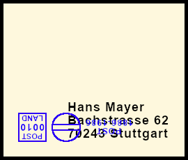 teilweise doppelter Freistempel: Postsendung die durch eine Fehlleistung zweifach mit einem Freistempel versehen wurde davon ist einer nicht vollständig |