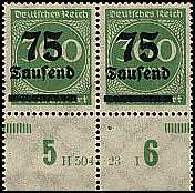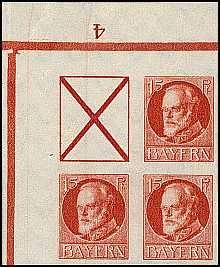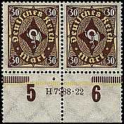 Plattennummer: Kennzeichnung unter- schiedlicher Druckplatten für den Platten- druck für die gleiche Briefmarke |