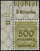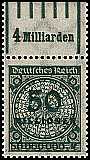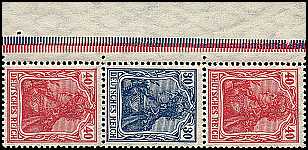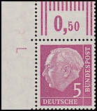 Aufdrucknennwert auf einem Bogenrand: Kennzeichnung auf einem Bogenrand um den schlecht sichtbaren Nennwert des Aufdrucks hervorzuheben |