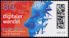mit Matrixcode: Briefmarke die als beab-sichtigte Ausführung mit einem Matrixcode versehen wurde