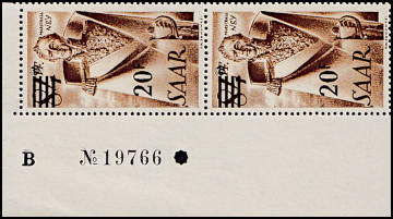 Paar mit Randdruck und ohne Rand-druck: Paar bei dem als beabsichtigte Ausführung nur ein Teil des Bogenrands mit einem Randdruck versehen wurde |