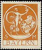 Bavariamuster: Dauerbriefmarken aus Bayern 1920 mit der Abbildung der allegor-ischen Gestalt Bavaria (=Bayern) |