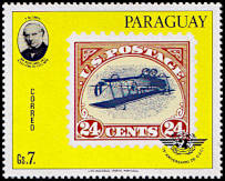 Inverted Jenny: Luftpostbriefmarke aus den USA 1918 die als Abart mit einem kopfstehenden Mittelstück versehen wurde (Doppeldecker Jenny)