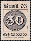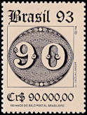 Ochsenauge: Dauerbriefmarken aus Bras-ilien 1843 mit der Abbildung einer großen Wertziffer in einem liegenden Oval |