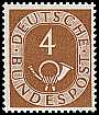 Posthornsatz: Dauerbriefmarken aus der BRD 1951 - 1952 mit der Abbildung einer Wert-angabe über einem Posthorn |