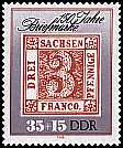 Sachsendreier: rote 3 Pfennig Dauerbrief-marke aus Sachsen 1850 |