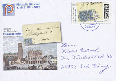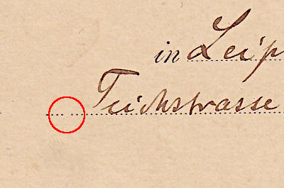 Punktlücke: fehlender Punkt in einer Adresslinie bei einem Ganzsachenbilddruck um Ganzfälschungen zu erschweren |