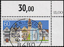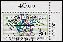 gedruckte Entwertung in der Ecke: Brief-marke die als beabsichtigte Ausführung mit einer viertel gedruckten Entwertung entwert-et wurde |