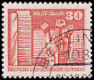 Zeitungsdruckentwertung: Briefmarke die als beabsichtigte Ausführung mit einem ge-druckten Zeitungstext entwertet wurde |