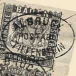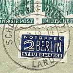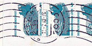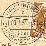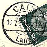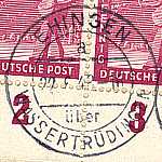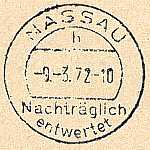 nachträglich entwertet Handstempel: Entwertungsstempel einer Postfiliale mit der versehentlich nicht entwertete Postwert-zeichen nachträglich gestempelt wurden |
