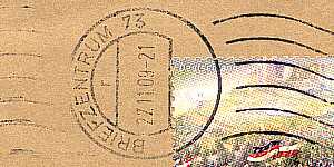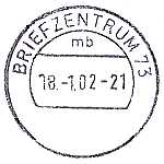 Briefzentrumhandstempel: Entwertungs-stempel der als Aufgabestempel in einem Briefzentrum eingesetzt wurde |