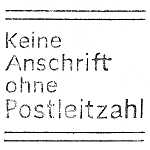 Anschrifteinsatzstück: Teil eines Masch-inenstempels der die Postkunden an die genormte Schreibweise von Adressen erin-nern soll |