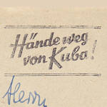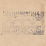 Losungseinsatzstück: Teil eines Masch-inenstempels der eine politische Aussage enthält |