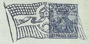 Flaggeneinsatzstück: bildliche Darstel-lung von Flaggen als Einsatzstück bei einem Maschinenstempel (Flaggenstempel) |
