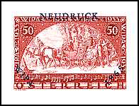 Nachdruck: erneuter Druck eines Postwertzeichens von einer Druckvorstufe (z. B. Urstöckel) nach Außerkurssetzung |
