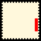 verfälschte Prüfzeichenstellung: Briefmarke mit echtem erhöhtem Prüfzeichen die in betrügerischer Absicht am unteren Markenrand nachgezähnt wurde um ein tiefes Prüfzeichen vorzutäuschen