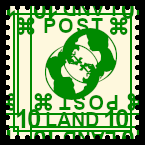 schräger Werteindruck: mehrfarbige Briefmarke bei der durch einen Fehler der Wertein- druck nicht parallel zur Grund- linie ausgerichtet ist |