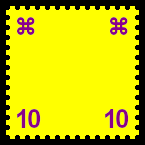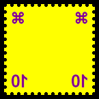 teilweise kopfstehender Bild- druck: mehrfarbige Briefmarke bei der durch einen Fehler einzelne Elemente kopfstehend anstatt stehend ausgeführt wurden |