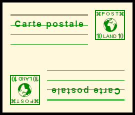 teilweise kopfstehender Ganzsachendruck: mehrfarbige Ganzsache bei der einzelne Elemente um 180 Grad gedreht ausgeführt wurden |