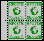 Heftchenblatt mit Zwischen- raumfehler: Bezeichnung im grafischen Gewerbe für einen schwankenden Abstand zwischen zwei Elemente eines Markenheftchenblatts |