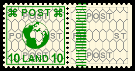 leichter Unterdruck: Brief- marke die durch einen Fehler mit einem klaren jedoch farblich zu schwach geratenem Unterdruck versehen wurde |