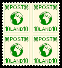 Viererblock mit fehlender Zähnung in der Mitte: Bogenteil das durch eine Fehlleistung zwischen den Marken ohne Zähnung geblieben ist |