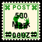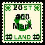 doppelter Zweitaufdruck davon einer kopfstehend: Briefmarke die durch einen Fehler zweimal anstatt einmal mit dem gleichen Zweitaufdruck versehen wurde davon einer um 180 Grad gedreht |