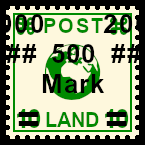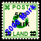 kräftiger Zweitaufdruck: Briefmarke die durch einen Fehler mit einem klaren jedoch farblich zu stark geratenem Zweitaufdruck versehen wurde |
