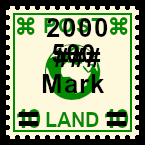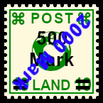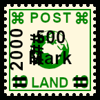 liegender anstatt stehender Zweitaufdruck: Briefmarke die durch einen Fehler mit einem um 90 Grad gedrehten waagrechten Zweitaufdruck versehen wurde |