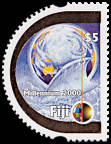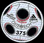 fußballförmige Briefmarke: kreisförmige Marke mit der Abbildung eines Fußballs |