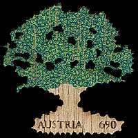 baumförmige Briefmarke: Marke in Form einer Eiche gedruckt auf Eichenholz |