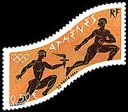 stabhochspringerförmige Briefmarke: Marke in Form eines Stabhochspringers |