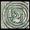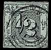 Edition 1852: black postage stamp design print on blue green or gray red paper Edition 1859: green or red postage stamp design print on white paper |