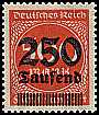 Briefmarken in unterschiedlichen Farben mit schwarzem Aufdruck "250 Tausend" oder "800 Tausend" |