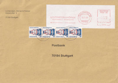 Inlandsbrief frankiert mit 4 Briefmarken und einem Absenderfreistempel |