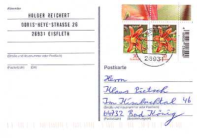 Inlandspostkarte frankiert mit 2 Briefmarken mit oder ohne Unterdruck |