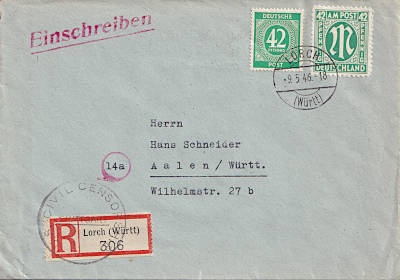 Inlandsbrief mit Einschreiben frankiert mit 2 grünen Briefmarken mit unterschiedlichem Bilddruck |