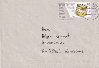 Damaged Postage Stamp Used As Franking: postal shipment franked with a damaged postage stamp |